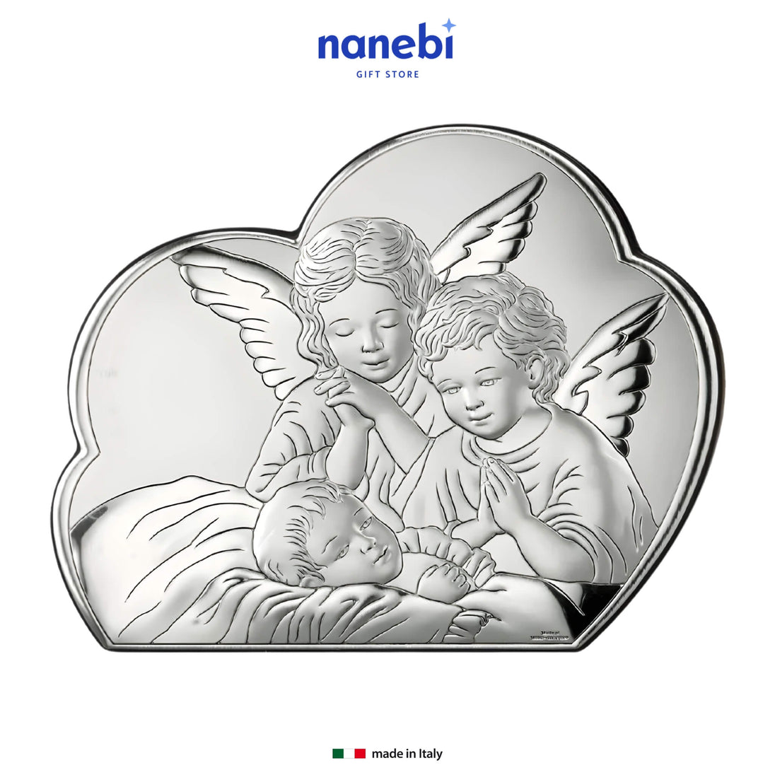 This sweet silver icon features two guardian angels lovingly watching over a sleeping baby, symbolizing peace, protection, and divine care. Shaped like a soft cloud, it adds a tender and comforting presence to any nursery or sacred space.