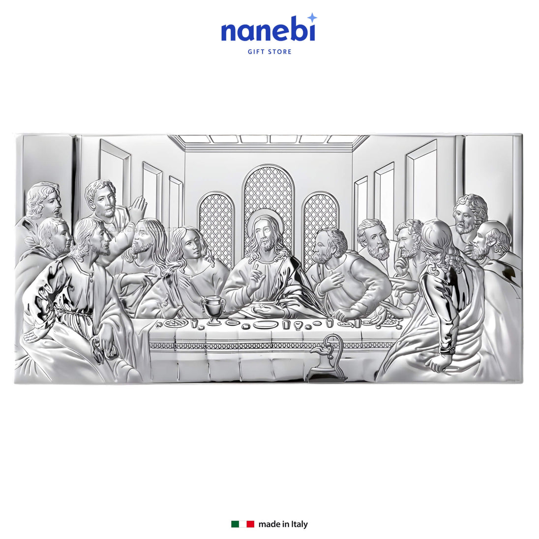his beautifully detailed silver icon portrays The Last Supper, the sacred moment Jesus shares His final meal with the apostles. Crafted entirely in luminous silver, this piece radiates purity, devotion, and timeless reverence — perfect for any spiritual space.